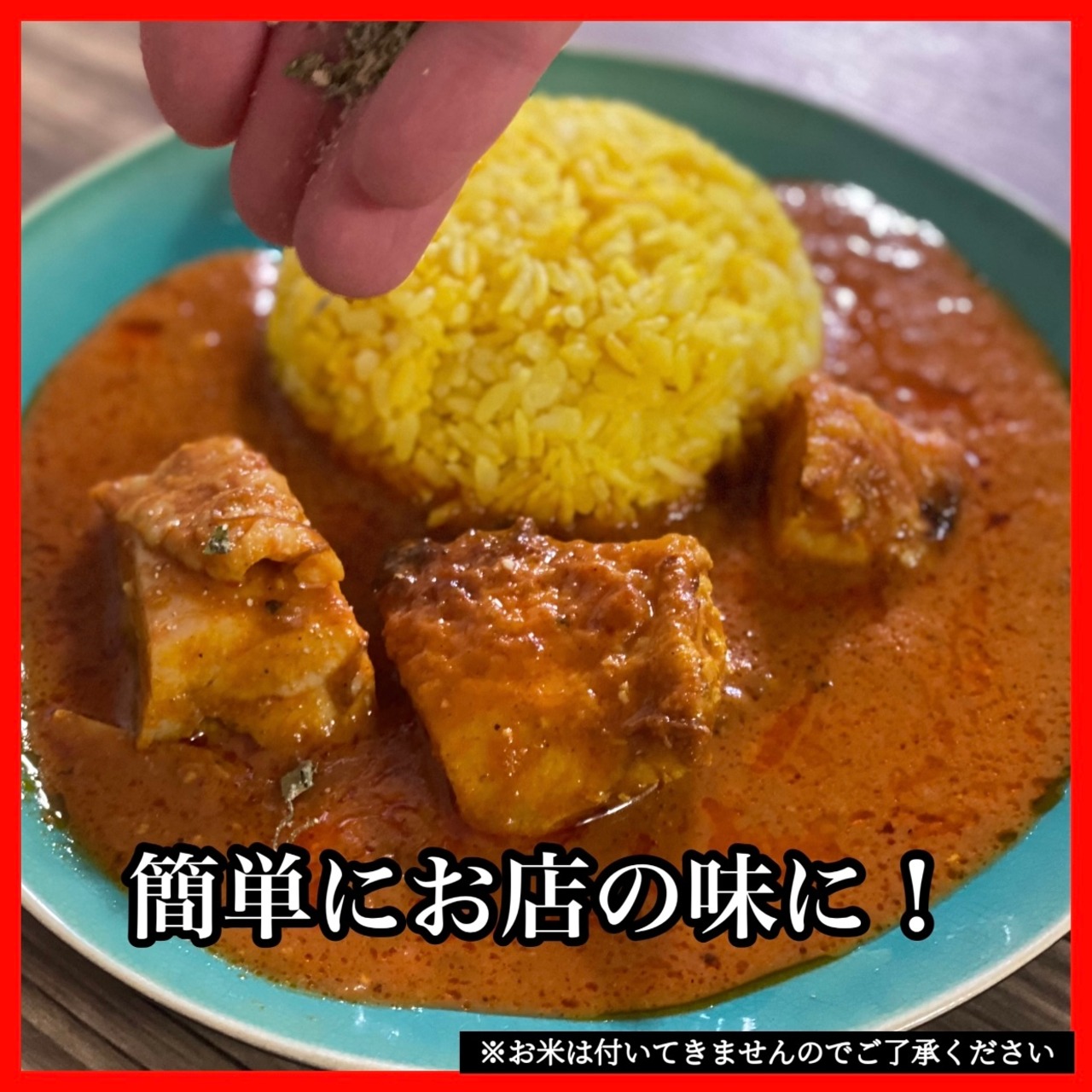 バターチキンカレーとポークビンダルーは別袋の"トッピングスパイス"を加えるとさらに美味しくなります!